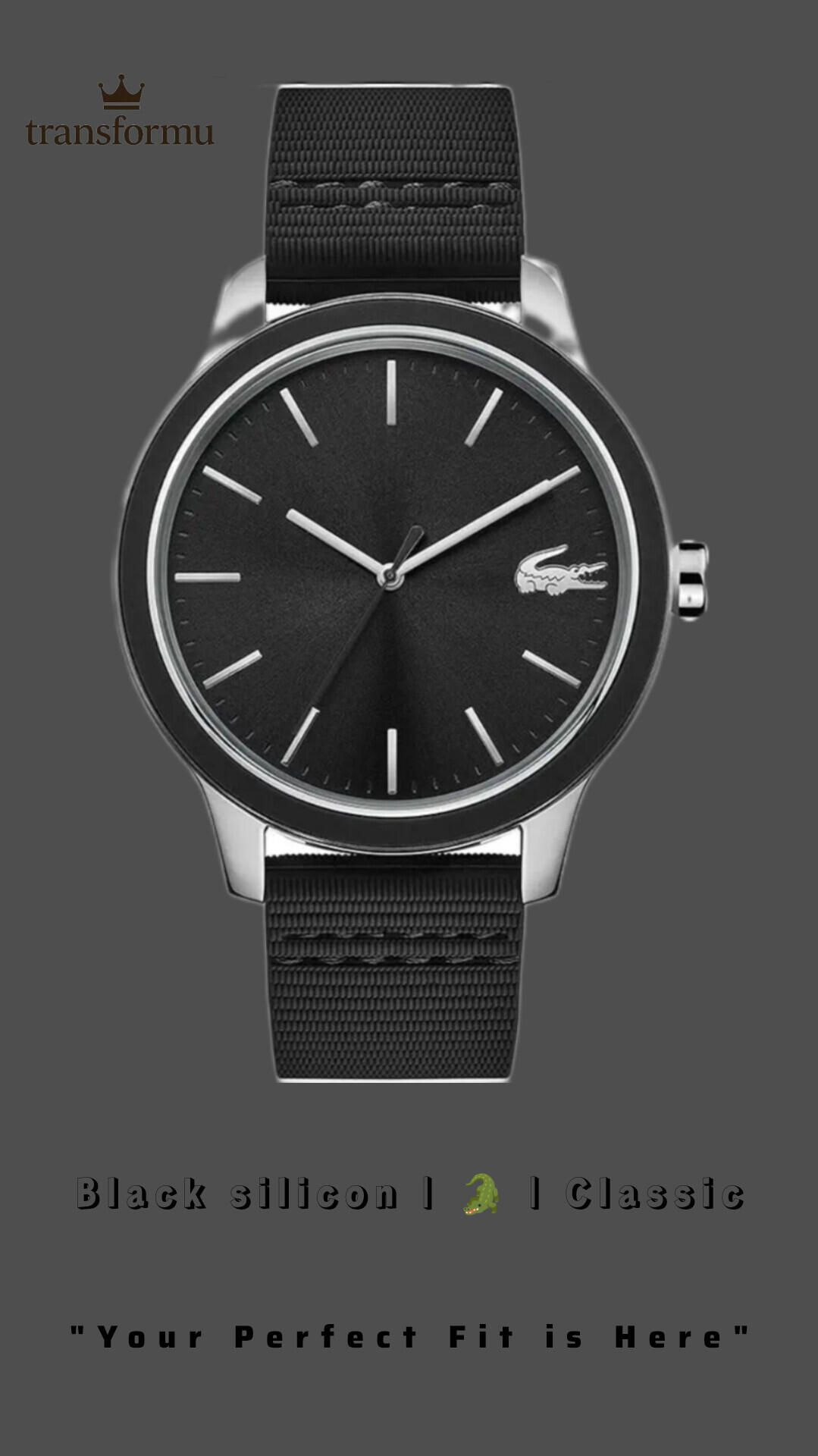 Lacoste Lacoste.12.12 Qtz Basic Black Round Dial Men's Watch|Black Silicone Material|Black Color Band