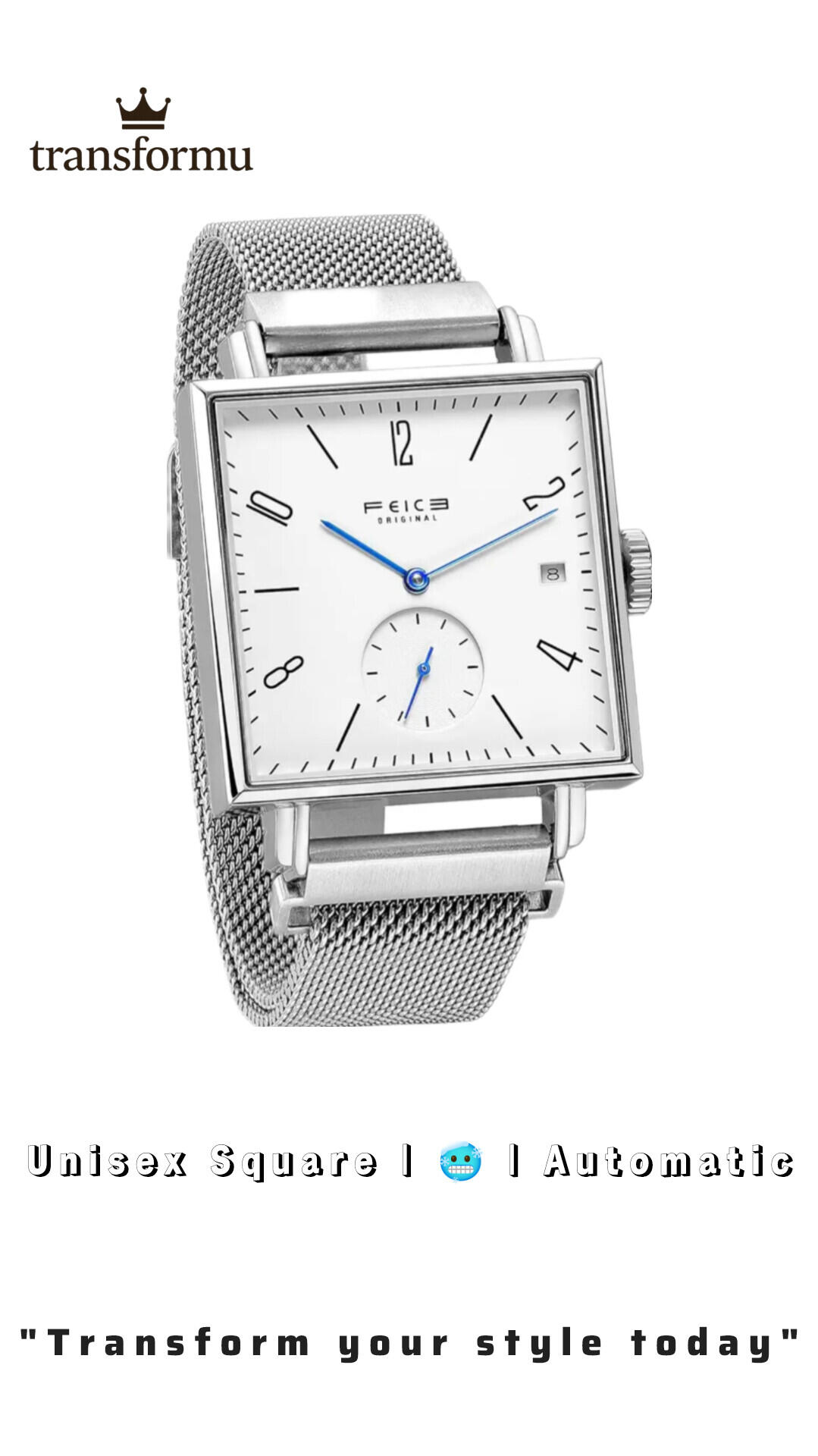 FEICE Unisex Square Watch Men's Bauhaus Automatic Watch Mechanical Watches Analog Wristwatch -Sapphire Mirror -34mm