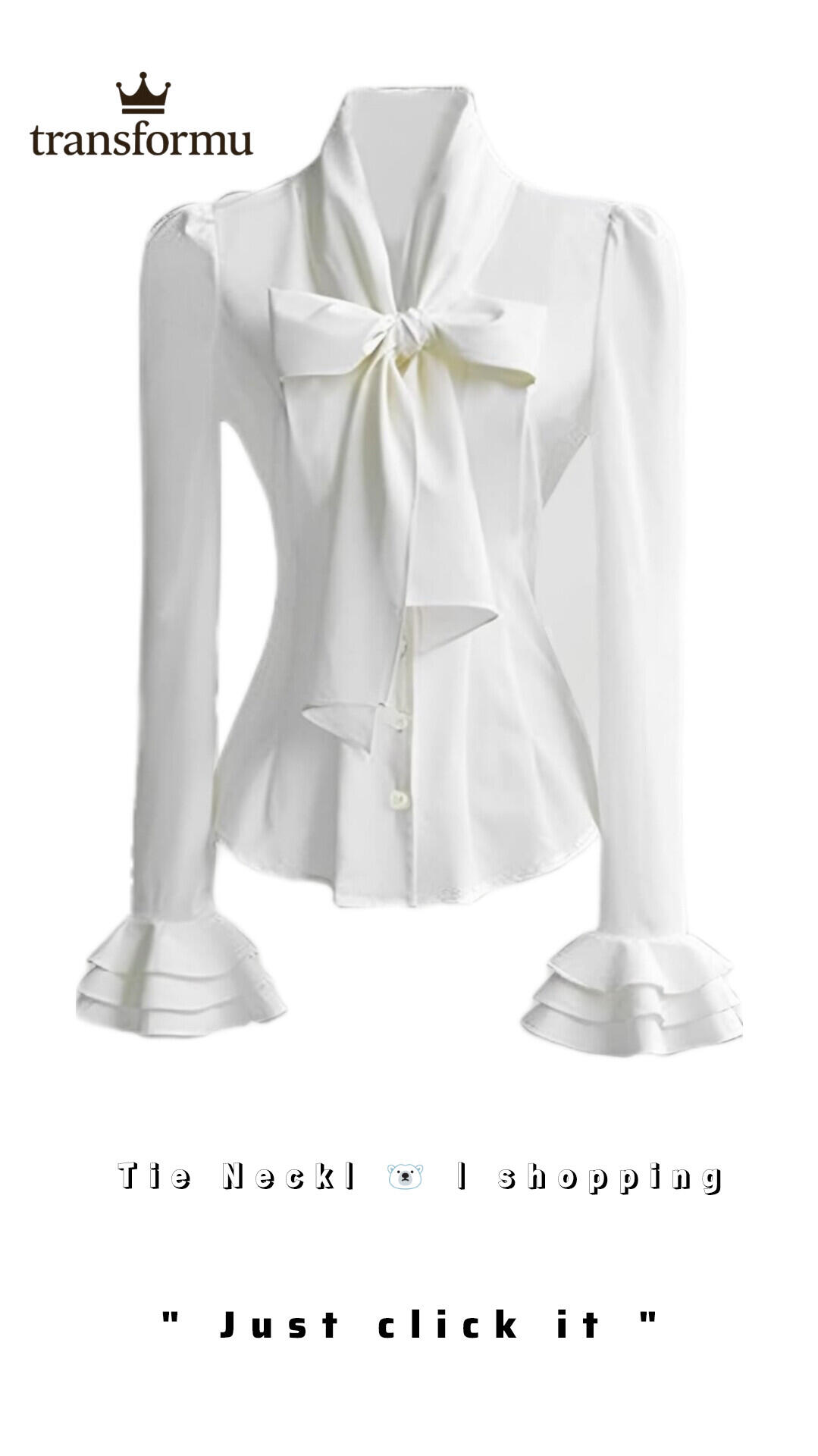 Women's Vintage Bow Tie Neck Long Sleeve Shirt Blouse Tops