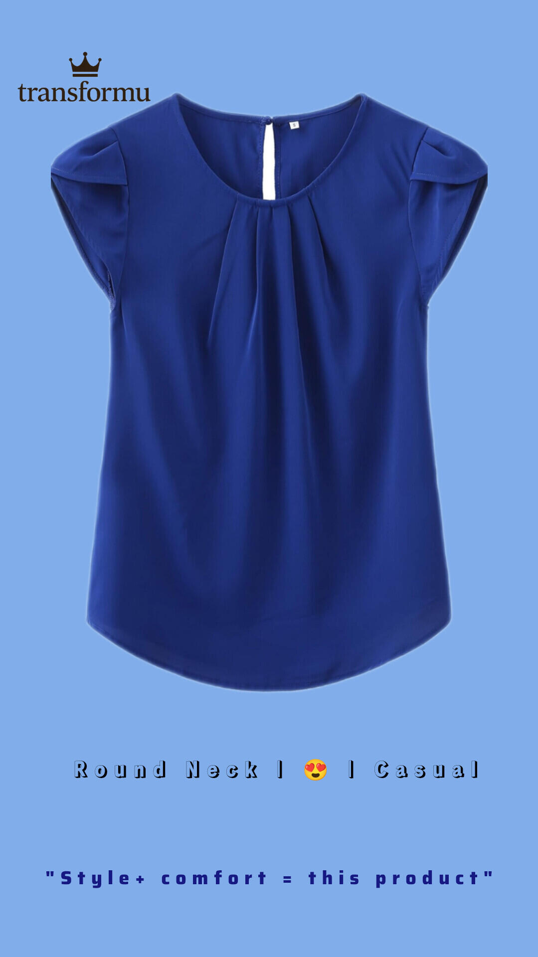 TASAMO Women's Casual Round Neck Basic Pleated Top Cap Sleeve Curved Keyhole Back Chiffon Blouse