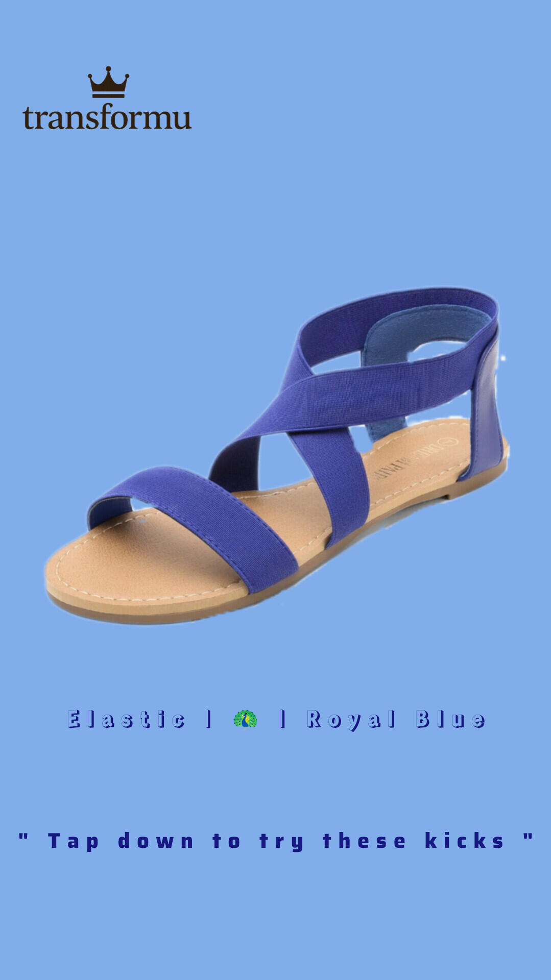 DREAM PAIRS Women's ELATICA-6 Royal Blue Elastic Ankle Strap Flat Sandals