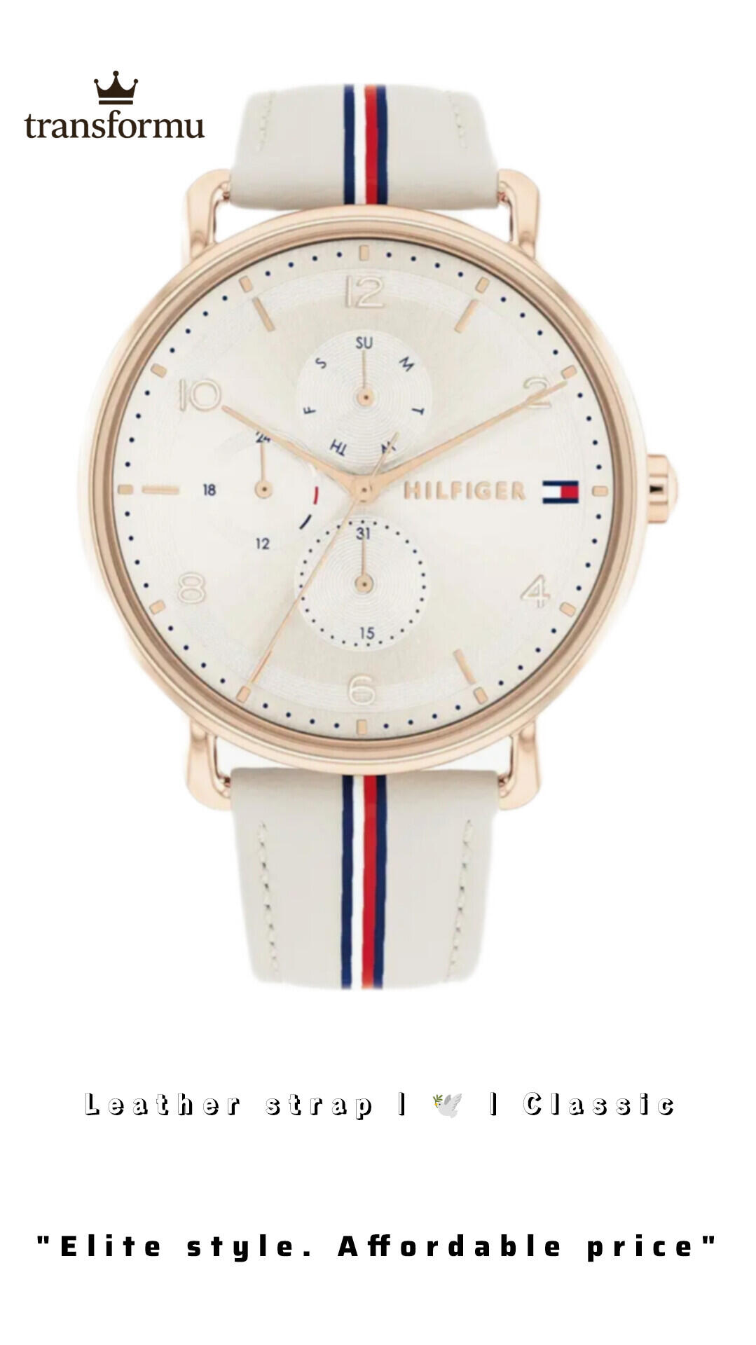 Tommy Hillfiger Lily Quartz Multifunction Beige Dial Beige Leather Strap Watch for Women