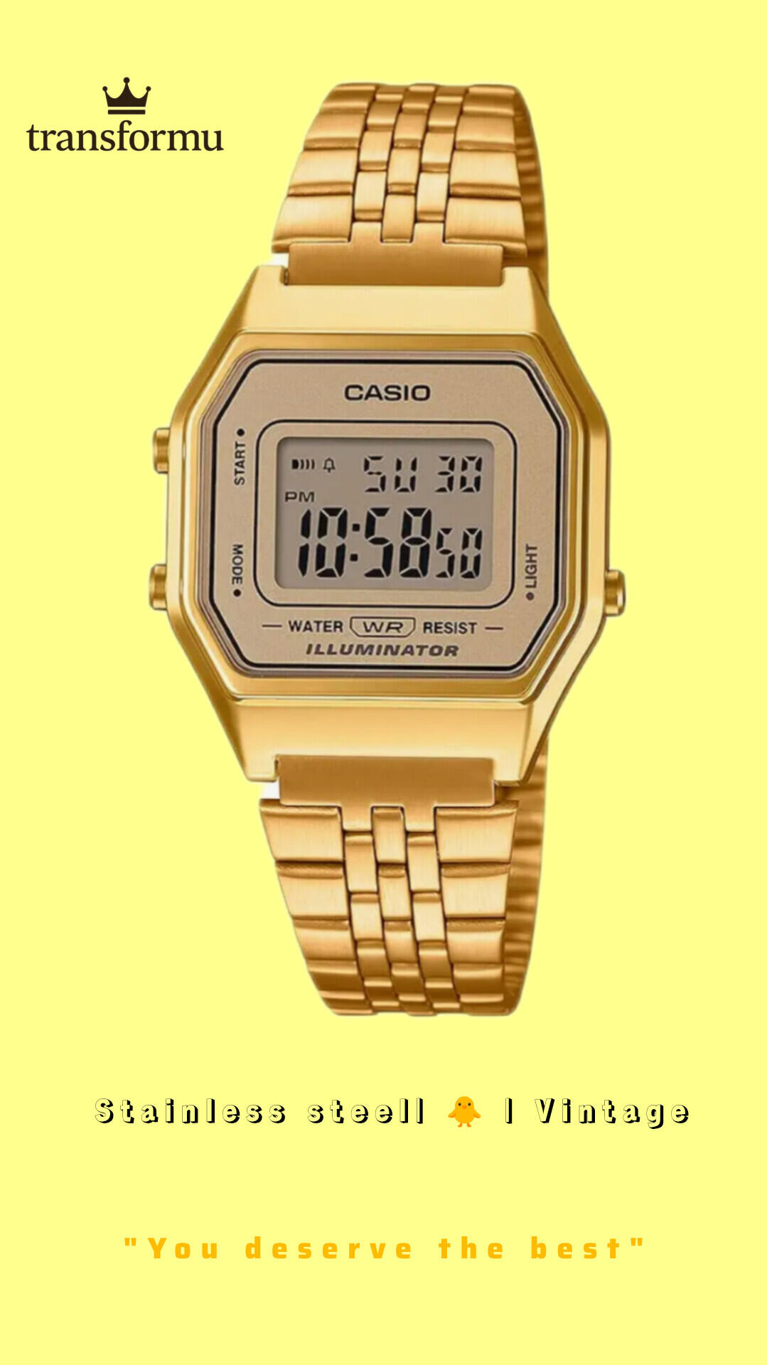 Casio Vintage Digital Gold Dial Women Watch Gold Stainless Steel Strap